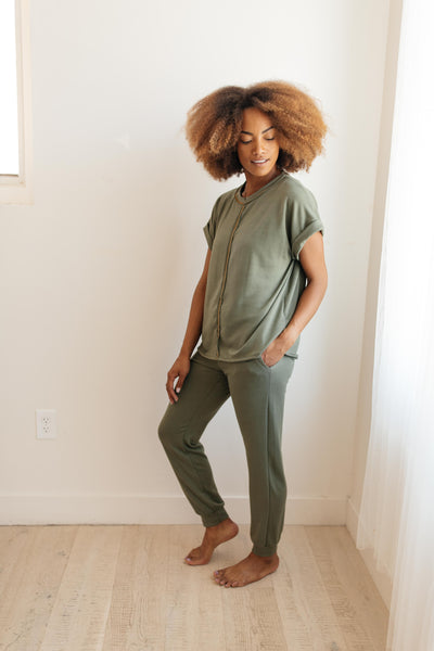 Let the love of luxurious loungewear begin! This top is the other half of a whole outfit that will keep you incredibly warm and comfortable! Its rounded neckline is high and keeps you covered! It features short sleeves so you can choose to layer up even more or keep it on the cool side. Plus, it's got the cutest decorative details down the front, and it really makes this shirt everything!