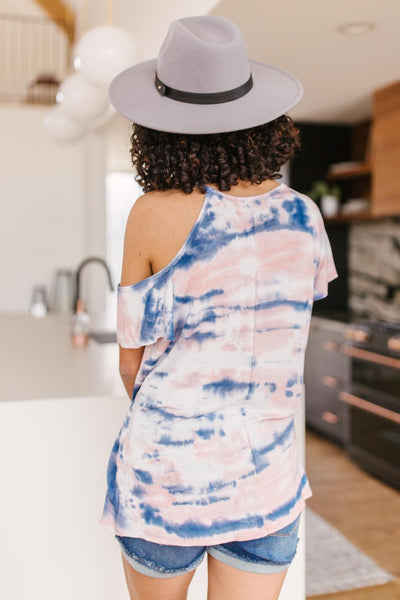 Keywords: Tie Dye, Top, One Shoulder, Pink, Blue