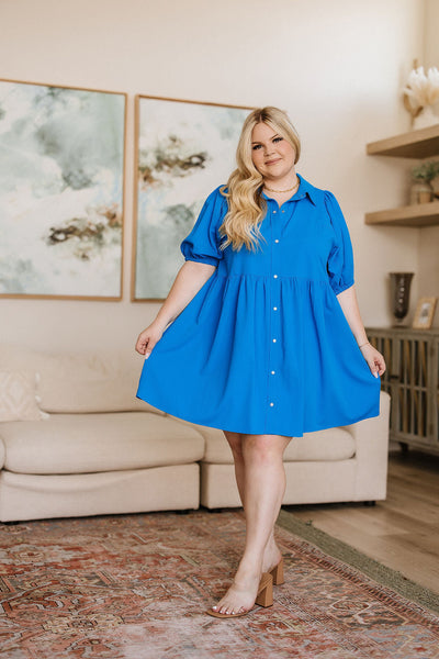 Take your spring wardrobe up a notch with the Morning Glory Button Down Dress! With its classic collared shirt dress design, pearl snaps, puff sleeves and contoured seam details, you'll look stylish and chic while feeling comfortable and confident. The babydoll silhouette is perfect for a care-free day out!