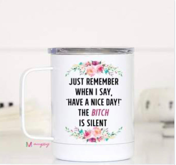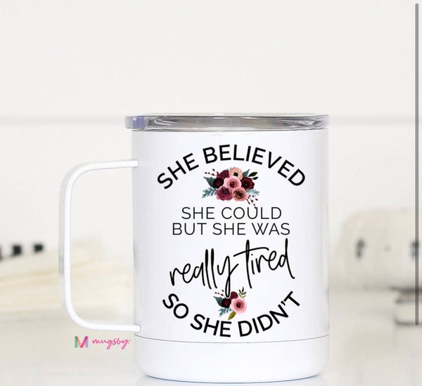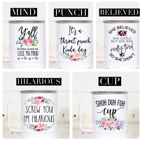 These mugs are going to be a perfect addition to your life! They're 12 oz stainless steel with a vacuum sealed plastic lid with a hole in the top. The image is printed on both sides of the cup. You're going to want to buy these for yourself and give them out as gifts. They're perfect!!
