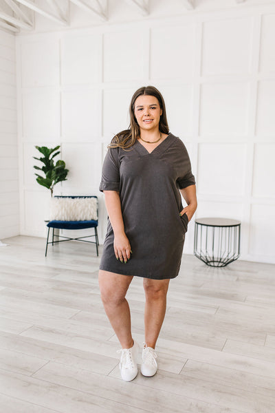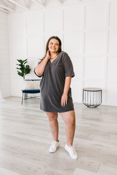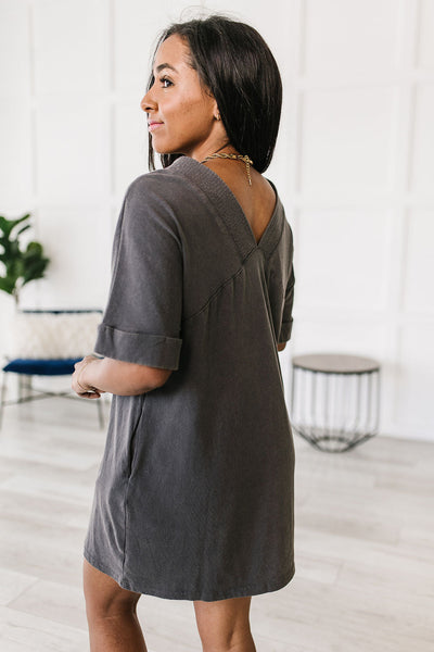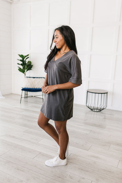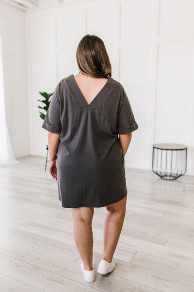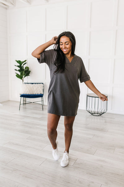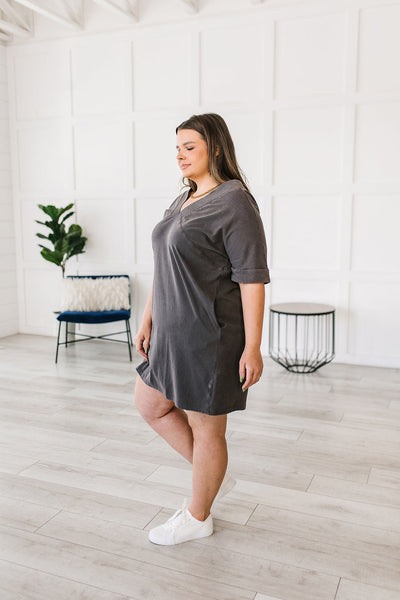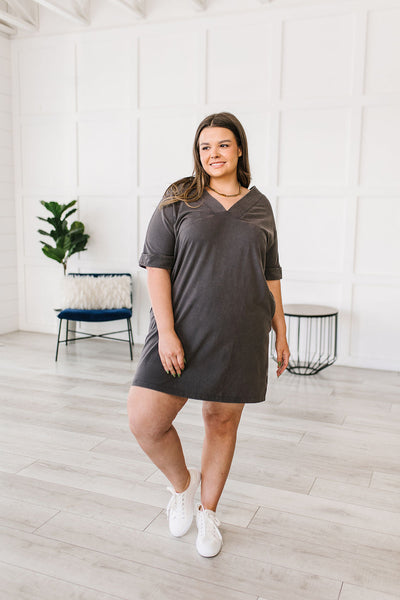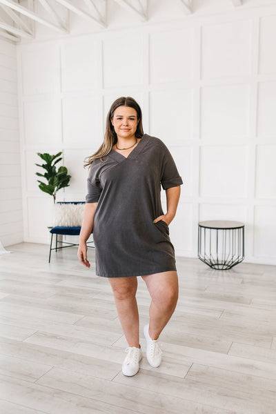 Make a bold statement with the No Matter What Acid Wash T-Shirt dress! This eye-catching dress features an acid wash jersey knit, banded v-neckline, cuffed sleeves, side pockets, and a comfortable shift silhouette. You'll look amazing and feel confident no matter what the occasion.