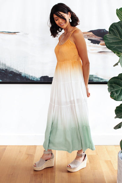 This stunning tiered dress is a fun way to bring soft colors to your everyday style. The Ombre Skies Tiered Dress features a round neckline and mid length skirt with colors that perfectly fade into each other. Pair this dress with a denim jacket and booties for a transition weather outfit.