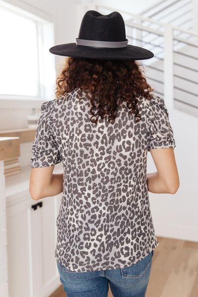 From the animal print, to the adorable puff sleeve, you'll love the details On The Wild Side Puff Sleeve Top! This top is made of a soft waffle knit fabric and has a round neckline and comfortable silhouette. Pair it with black pants and a felt hat.
