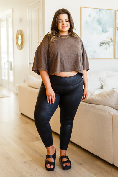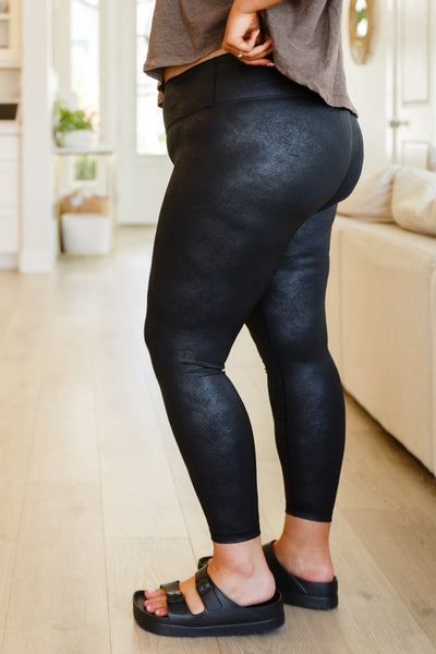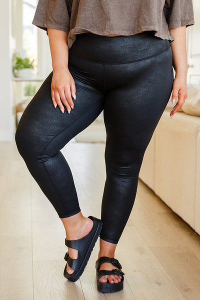 Experience ultimate comfort and style with Perfect Fit High Waisted Leggings! These leggings feature a faux leather feel with a high rise and compression fit. This athleisure essential also includes a a yoga waistband with a phone pocket, giving you the perfect combination of style and utility. Ready to experience a perfect fit?