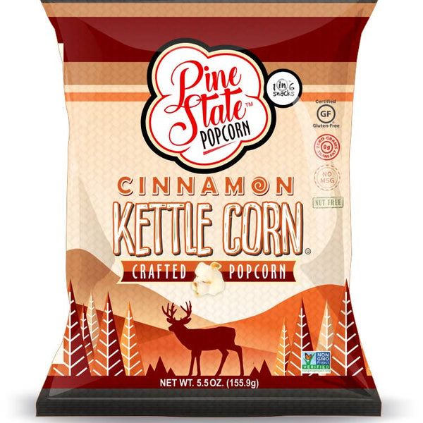 Cinnamon Kettle Corn Crafted Popcorn Sweet & Salty never tasted so Great! The old favorite made with our Pine State recipe, mixed with the kick of sweet cinnamon. Grab a handful and get hooked!