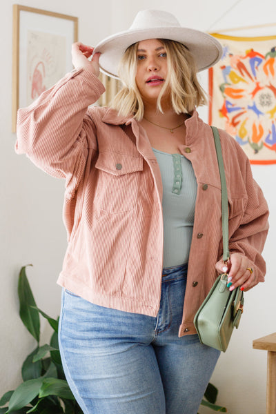 Keywords: Corduroy, Jacket, Shacket, Pink
