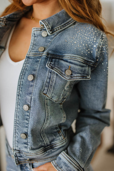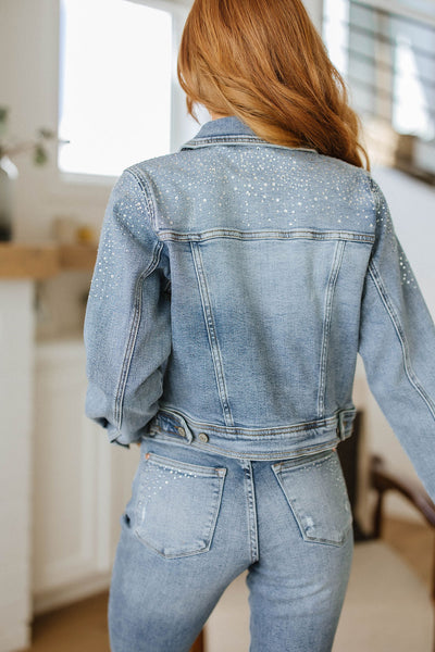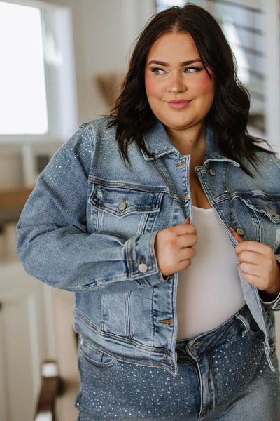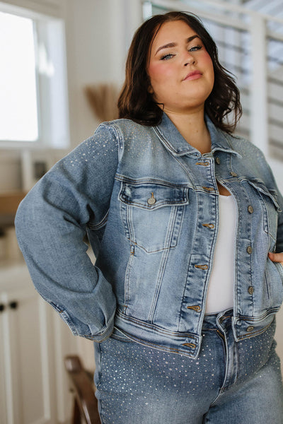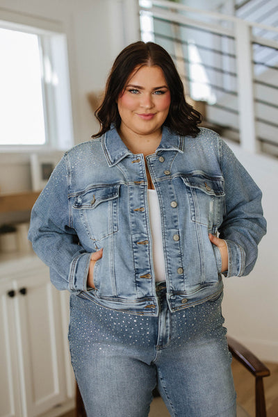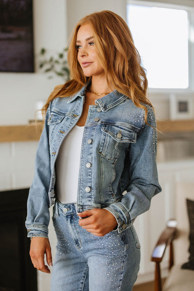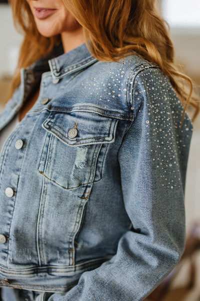 This Reese Rhinestone Denim Jacket is the perfect combination of casual and glamourous! Crafted from comfy stretchy denim and embellished with rhinestones, you'll turn heads everywhere you go. Get ready to make a statement!