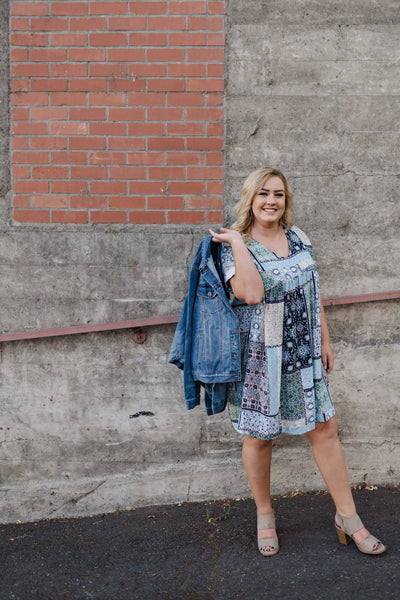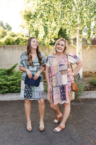 This dress is an absolute dream. We love the patchwork design on the fabric and love even more how breathable and cool it is to wear. 10 out 10 my friends, grab this one and wear it into fall with some cute leggings!