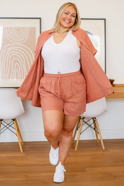 Take a trip to comfort with the Roadmap To Love Shorts in Marsala! These shorts have an elasticated waist and functional drawstring for a perfect fit and front pockets for all your essentials. Pair with the Roadmap To Love Top in Marsala for a complete and stylish look, or mix and match with your favorite pieces. Bon voyage to fashion with the Roadmap To Love Shorts!