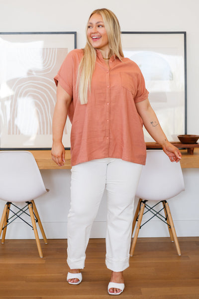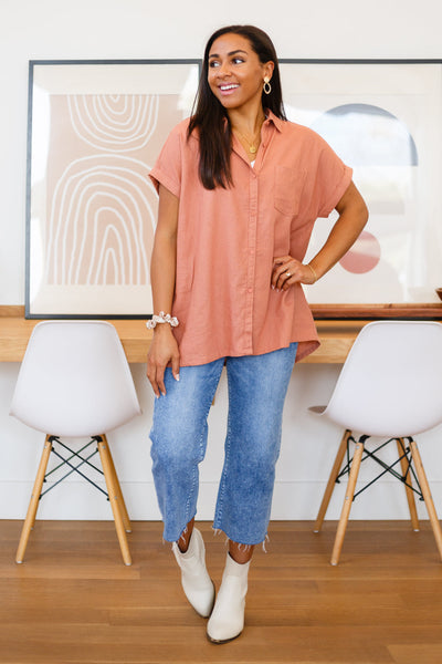 Enjoy the journey with the Roadmap To Love Top in Marsala! This loose fitting linen top has a collared neckline, cuffed short sleeves, and functional buttons. This top is your ticket to effortless style. Pair with the Roadmap To Love Shorts in Marsala for a complete and stylish look, or mix and match with your favorite pieces.