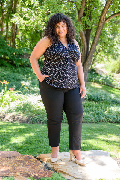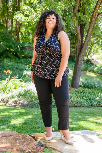 Make life easier with the Role Model Sleeveless Blouse! This top can be taken from day to night in a breeze. A lightweight, stretchy fabric shapes a v-neckline with knotted detailing that drops into a slightly flared bodice. Pair this top with a blazer, slacks and heels and when the sun disappears, strip the blazer for a chic nighttime look!