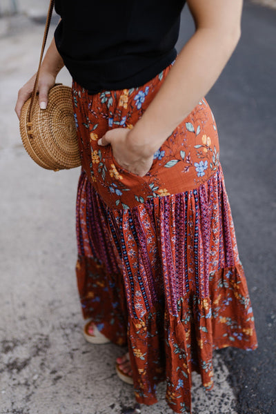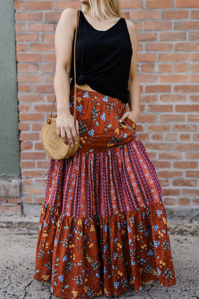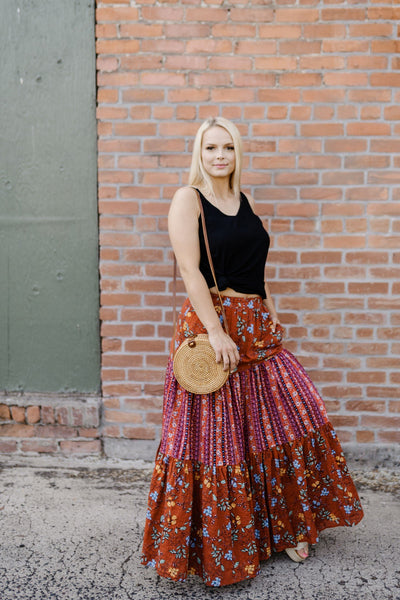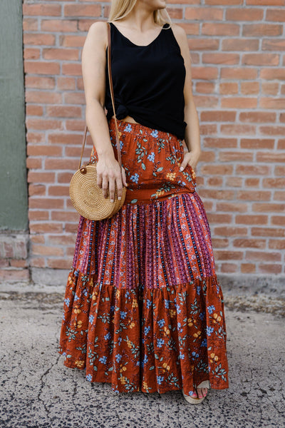 Following the trends of this seasons hottest colors, this lovely maxi skirt will have you falling in love with the rich tones and vibrant hues.