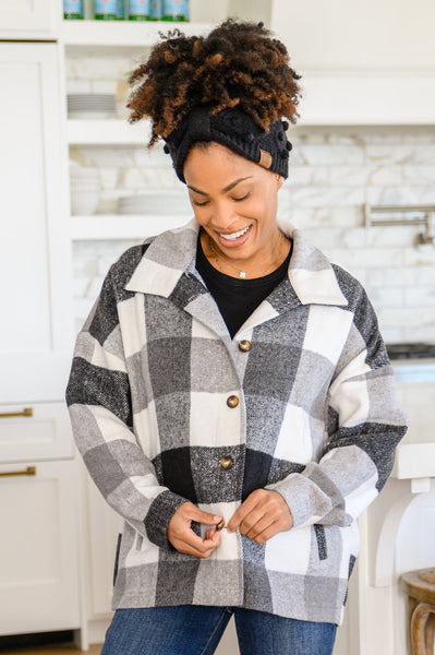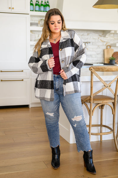 The Saturday Stroll Brushed Tonal Plaid Shacket is the final touch to the perfect, cool girl fall outfit! A soft and cozy black, white, and gray plaid fabric shapes a collared neckline with button front, and drop shoulder detail that falls into long sleeves. A slightly oversized bodice features two side pockets and a straight cut hem. This perfect layer is easy to style and even easier to love!