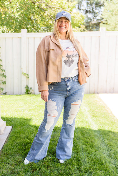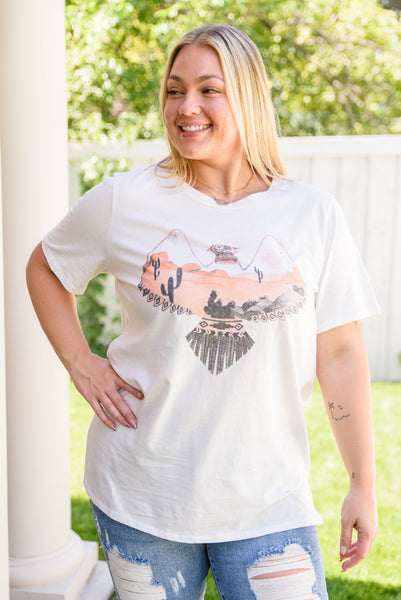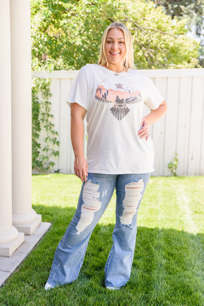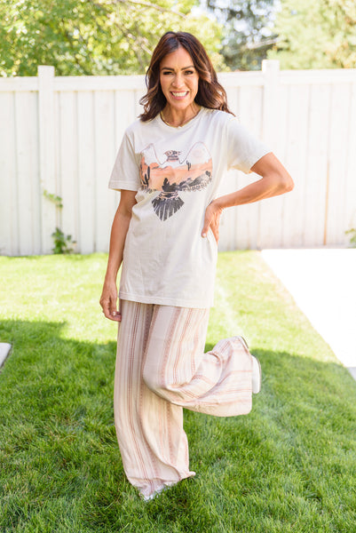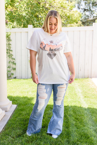 You won't regret adding the Scenic View Graphic T-Shirt to your collection! It's lightweight, stretchy, slightly oversized, and has the cutest eagle graphic that makes up the bodice for a boho-chic touch. The round neckline, short sleeves and boxy fit are classic details that you'll love!