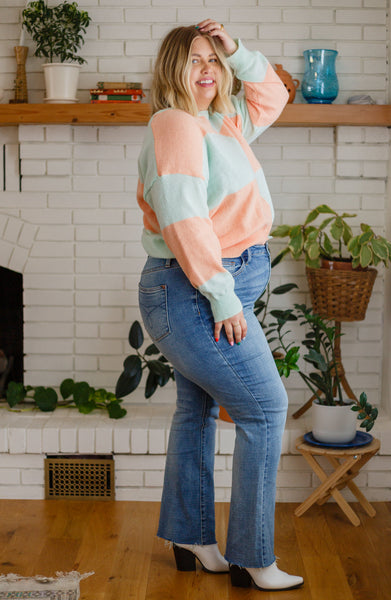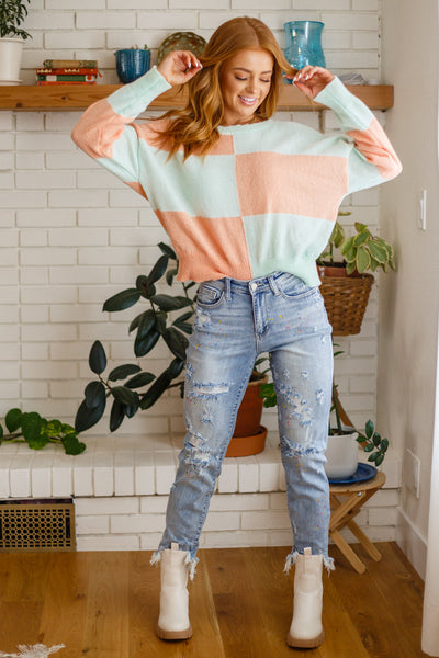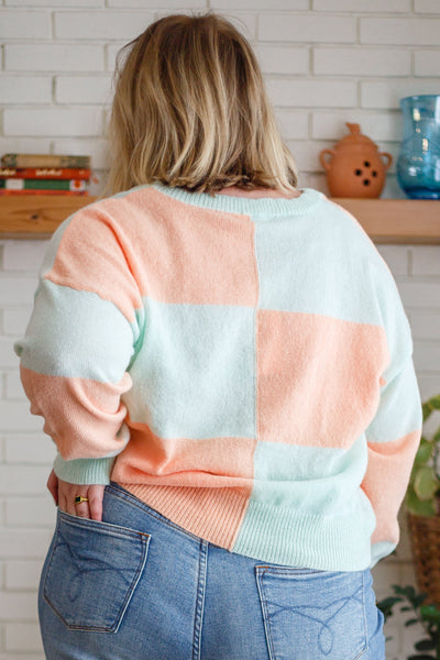 When it comes to the Secret Bookclub Checkered Sweater In Cantaloupe, you'll never have a boring fit again! This adorable sweater features a lightweight, stretchy knit that shapes a round neckline with a loose fit bodice ending at a slightly cropped hem. Long sleeves with a drop shoulder detail frame this cute knit with a ribbed detail lining the sleeve cuffs, hem, and neckline.