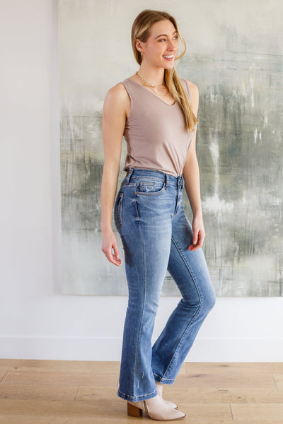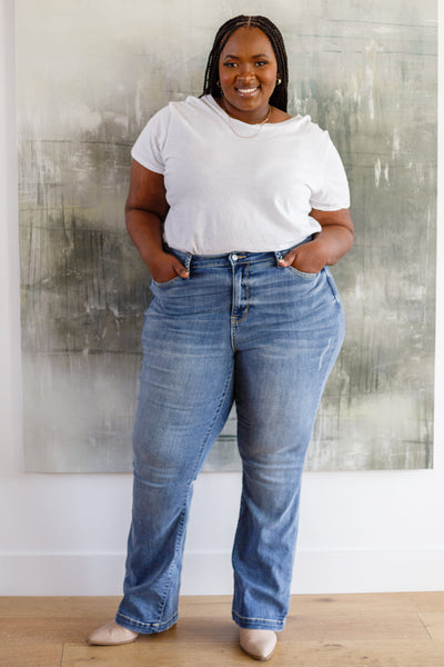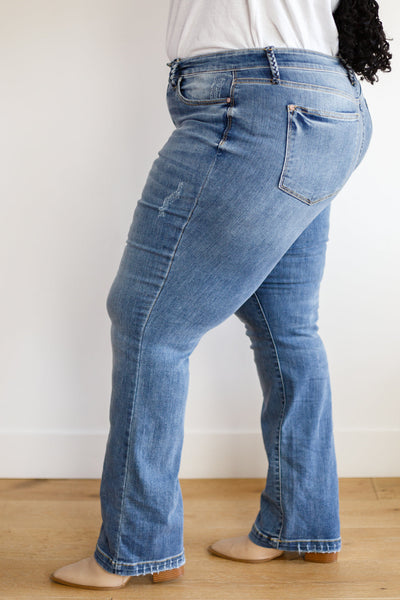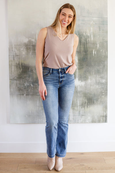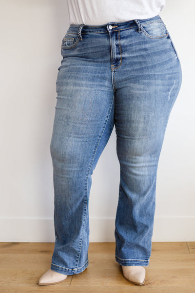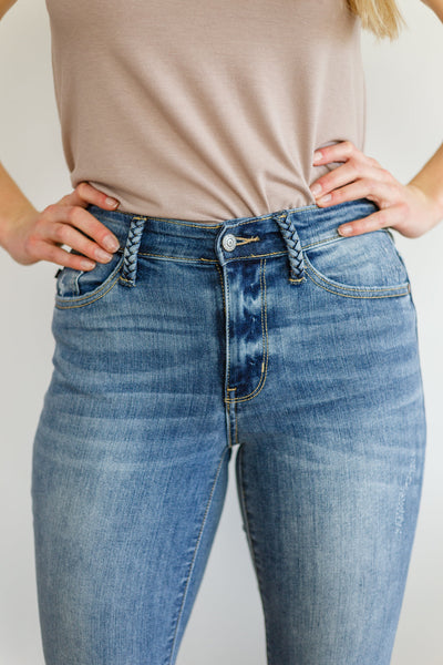 Make sure you wardrobe is stocked with timeless classics like the Shauna Mid Rise Braided Belt Loop Jeans! Stretchy mid wash denim shapes a mid rise waist with five pocket cut and zipper fly. Slim fit pant legs slightly flare out at the ankle creating the perfect boot cut silhouette. Braided belt loops decorate the waist line adding such a fun and unique touch!