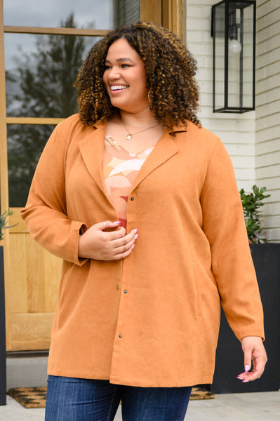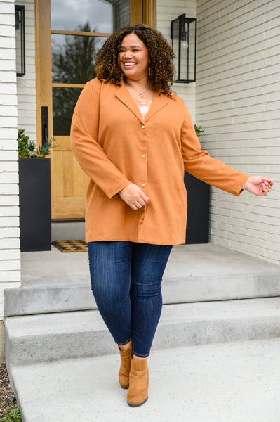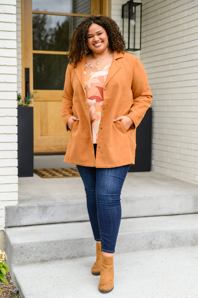 Perfect your Fall fit with the She's On Point Collared Coat In Rust! This amazing coat features a notched lapel collared front with a snap button closure, two side pockets, and a length that hits below the hips. We are so excited thinking about all the outfits we're going to wear with this amazing coat!