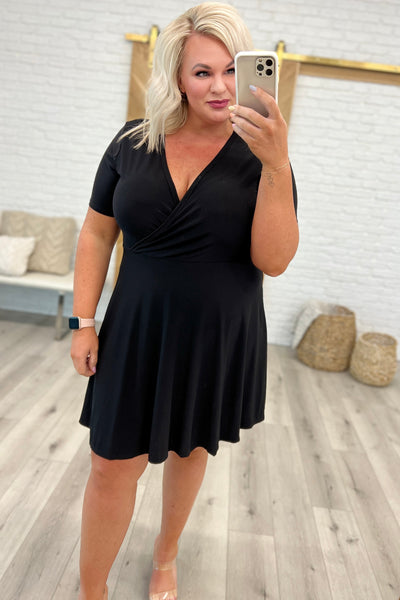 Look modern and beautiful in this Sincerely Yours Skort Dress. Its slinky knit fabric and surplice front look chic and timeless, while the v-neckline, short sleeves, and circle skirt flatter your figure. Plus, a built-in short layer ensures comfortable coverage.