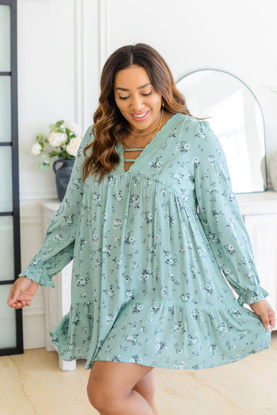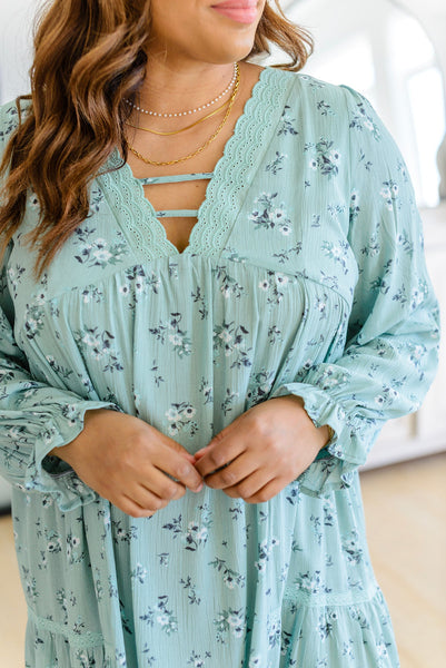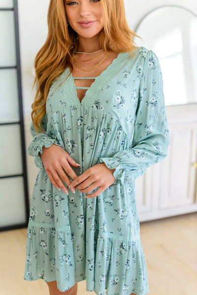 Feel elegant and flirty in our Sing Sweetly Lace Trim Floral Dress! The lace trimmed v-neck design, romantic floral print, and delicate lace up lattice back detail combine to make a stunning look that's sure to turn heads. The lantern sleeves with ruffle sleeve hem add the perfect final touch.