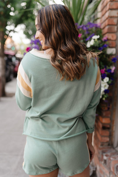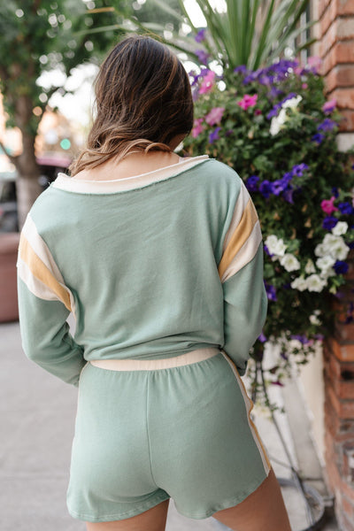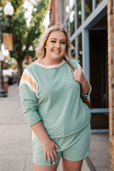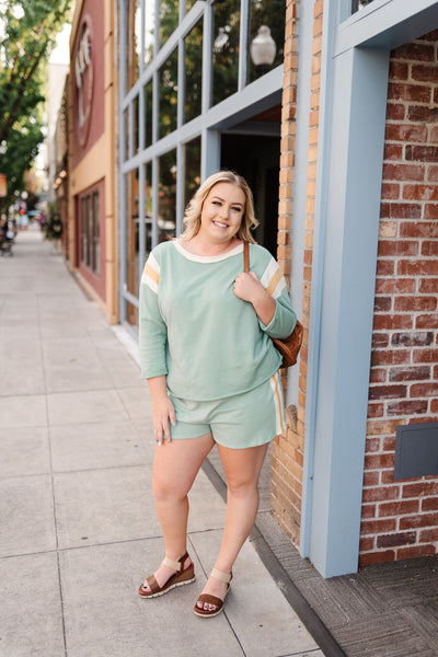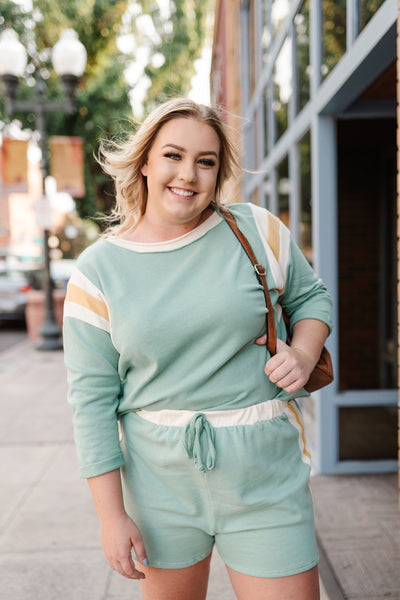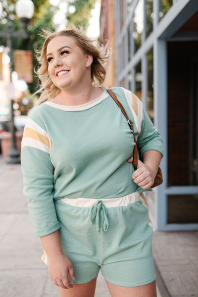 The shorts to your Sport A Mint Top. We are loving the fun retro vibe of this outfit and if we could go back to the days of roller skates, Slip and Slides and Grape Nehi, we just might!! Grab this outfit, bring up Threes Company on the big screen and chill with us.