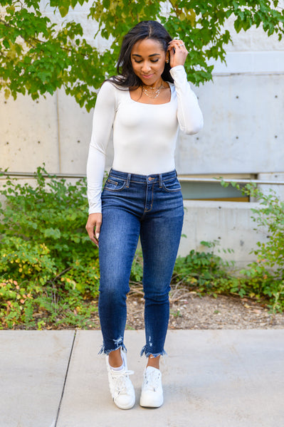 You can never have too many pairs of jeans and the Stacie Midrise Destroyed Slim Fit Jeans are the perfect addition to your collection! With a mid rise waist, five pocket cut and zipper fly they provide the classic feel of the jeans you know and love. The slight distressing through the legs, lived in fading, and destroyed hem make a statement while still being timeless!