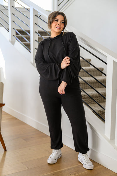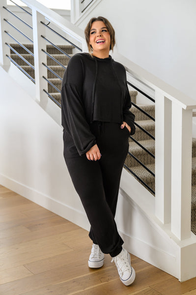 Take a moment to get cozy in the Stay Right Here Soft Knit Hoodie In Black! A super soft knit shapes a hooded neckline with functional drawstrings that tops a boxy, cropped silhouette, with slouchy long sleeves and drop shoulder detail. Whether its a fun night in or you're on the go this is the perfect pick!