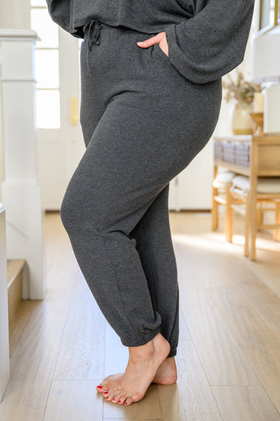 You won't want to leave the couch after throwing on the Stay Right Here Soft Knit Joggers In Charcoal! An extra soft knit fabric shapes a high waist with an elastic band, topping a loose fit leg with elastic cuffs. Complete with a functional drawstring and side seam pockets.