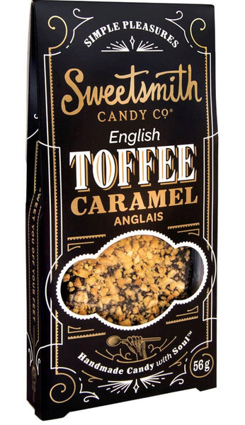 English Toffee-Our toffee begins as your teeth uncover the soft hand coated medium-dark chocolate, revealing the butter toffee base. This bestseller wouldn't be complete without a sprinkle of fresh, locally roasted peanuts!