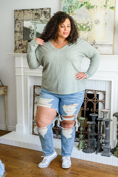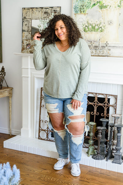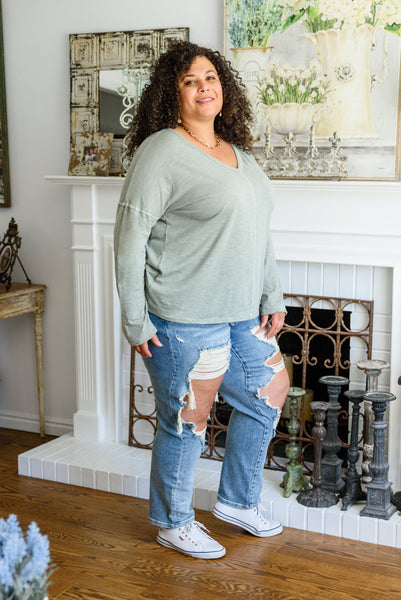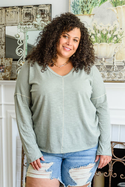 Bring a newfound level of comfort and style to your everyday wardrobe with the Take A Road Trip Long Sleeve! This perfect tee features a v-neckline, with a drop shoulder falling into long sleeves, attached to a loose fitted bodice with exposed seam detail! Pair with distressed denim and boots for a laid back and stylish look!