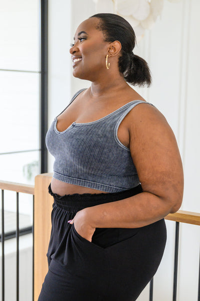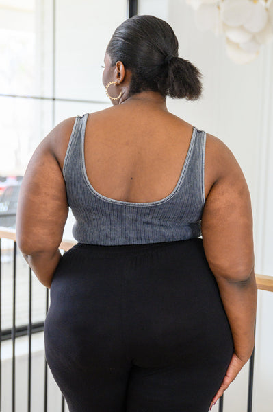 Create casually cool looks in the Take Me There Ribbed Keyhole Tank In Ash! A stretchy ribbed knit shapes a scoop neckline with a keyhole detail, fitted bodice and a cropped hem. A mineral wash effect spreads across the entire top for a unique and fun look!