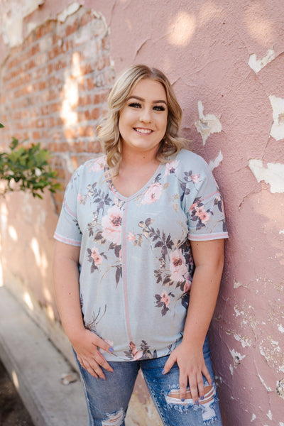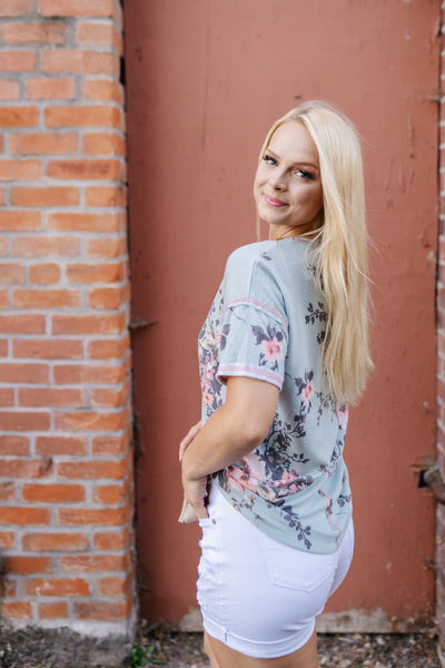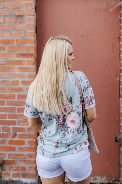 The softest, prettiest shade of green splashed with beautiful pink flowers makes this a top that we are absolutely gravitating to. We loved in paired with our Bleach Splash Judy Blues for an easy day look or pair it with some dark wash skinny jeans for a night out.