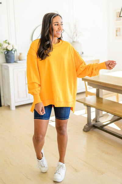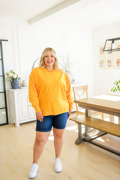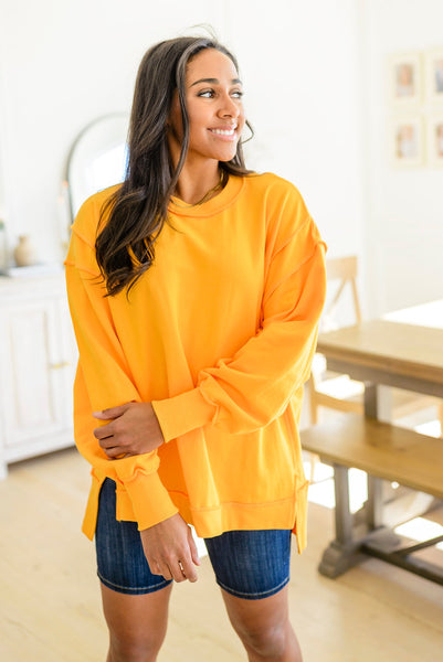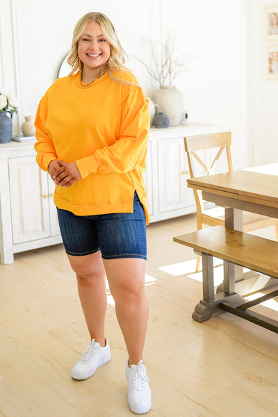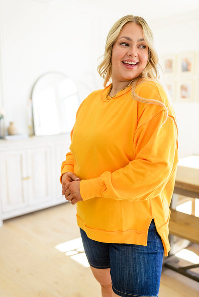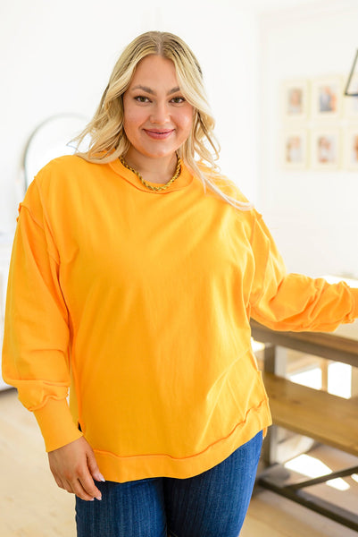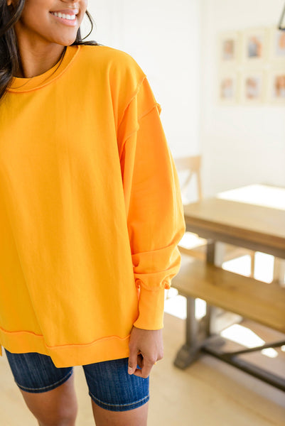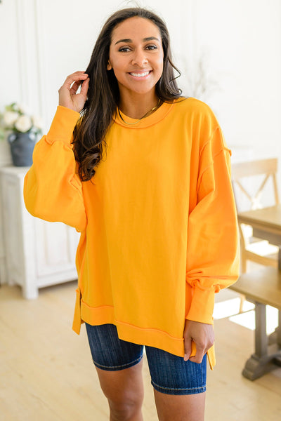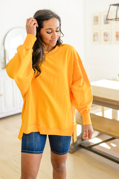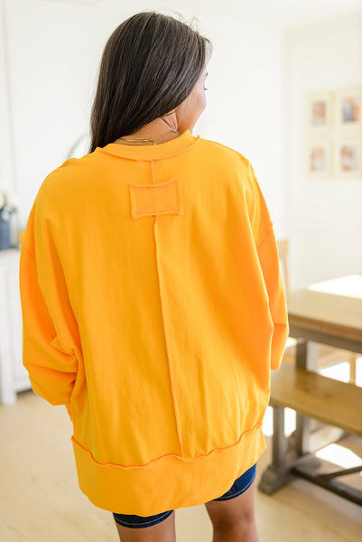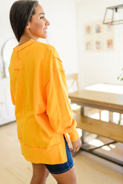 Step up your comfort game with the Tell Me Something Good Sweatshirt. This French Terry Orange Sweatshirt is designed with an oversized fit and exposed seam work for an effortless look. Featuring a back patch detail, side slits and a high/low hemline. Crafted for maximum coziness and style - have you ever heard anything so amazing!?