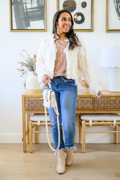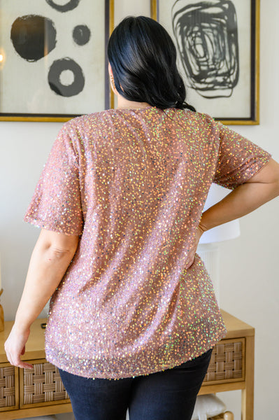Max out those style points with the Times Square Sequin Short Sleeve Top In Gold! Multi color, shimmery sequins dance across this top overlaying a U-neckline with short sleeves and a loose fit straight-cut bodice. This statement piece will pair well with a black blazer and mini skirt for a chic night out look!