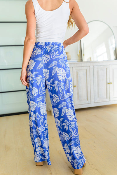 Step out in style and make a statement with our new Tropical Stories Wide Leg Pants! Crafted from lightweight jersey knit fabric and decorated with a gorgeous statement floral print, these pants are designed to make you feel confident and inspired. An elastic waistband and side pockets make them comfortable and practical for everyday wear, while the wide leg silhouette gives you a flattering and trendy look. Pair with the Tropical Stories Kimono for an effortless vibe.