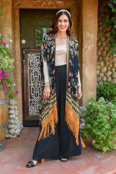 - Can't Look Away Floral Fringe Kimono