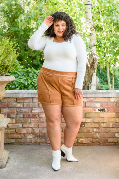 We have never seen a more perfect transitional piece! The Wait With You Shorts are perfect for when it's still too hot for jeans but not too hot for corduroy! Built for comfort with an elastic waistband and loose fitted shorts these shorts are perfected with pockets on both the side and back. Meanwhile the pin tuck detail, corduroy fabric and stunning rust color make these super fashionable and on trend!