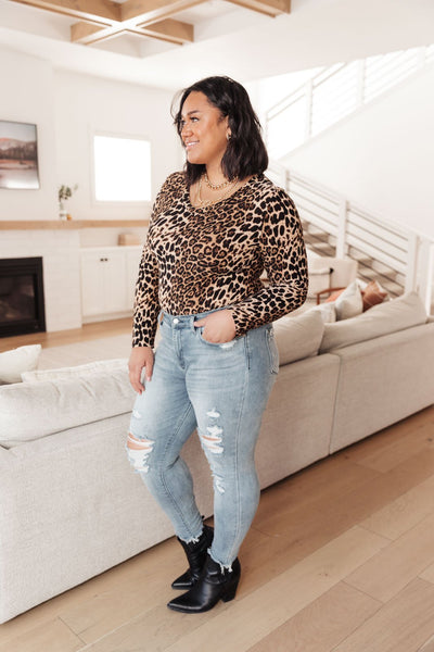 We. Love. Animal Print. Why? Because it can make any outfit feel extra fierce! This bodysuit is lightweight and stretchy with a bold print and long sleeves. Throw on a cute blazer over top and head to the city for a girls night out!