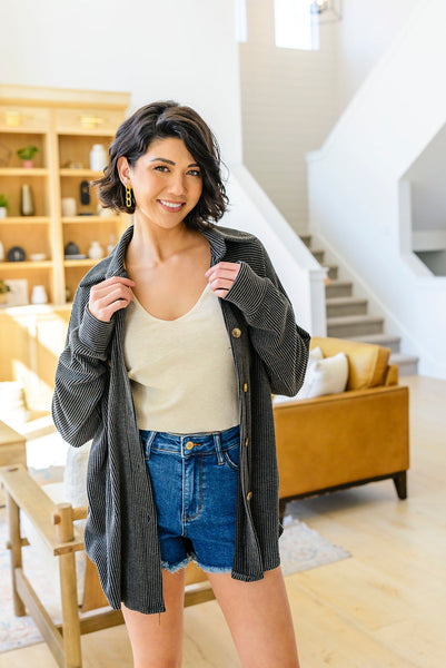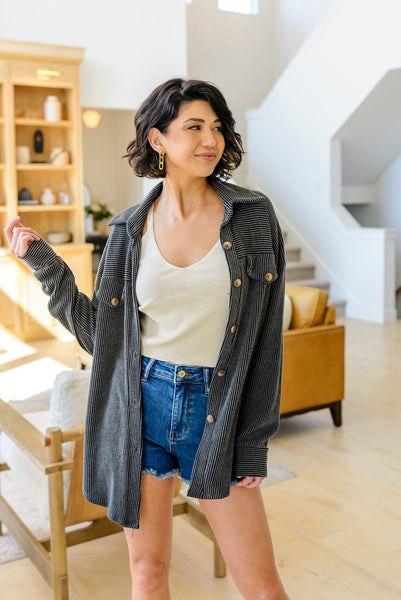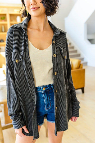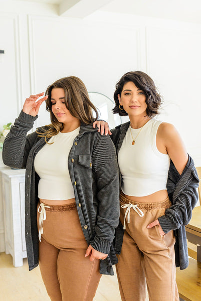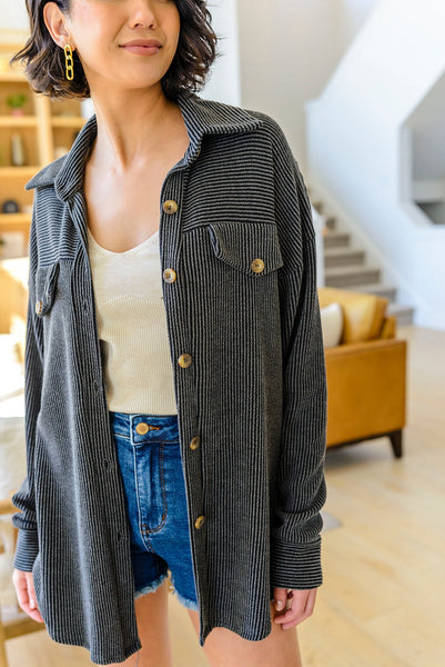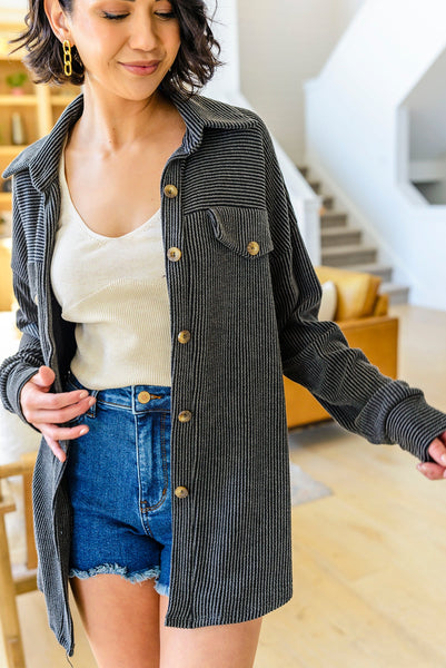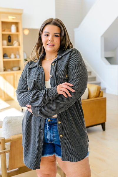 You just can't ever have enough shackets, they truly go with everything! The Windsor Textured Shacket In Chestnut features a textured ribbed knit that shapes a collared neckline, falling into a functional button front and a relaxed fit bodice. Long sleeves with drop shoulder detail frame this darling shacket, ending at cuffed hems.