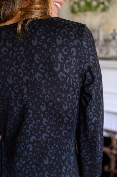 Turn every head in the room with the help of the Wishful Thinking Animal Print Dress In Black! This stunning dress is painted in a black and gray animal print overlaying a round neckline with long sleeves. A body hugging silhouette features ruching down the sides with a cross front hem detail that ends just before the knee. This chic dress is perfect for the office, dinner, or your next outing!