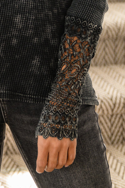 Keywords: Thermal, Washed, Black, Lace, Henley