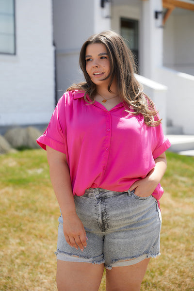 Discover effortless style and comfort in the Working On Me Top. Featuring a gathered collared neckline, oversized fit and cuffed dolman sleeves, it's the perfect piece to transition between seasons. Plus, the curved high/low hemline adds a playful edge to your wardrobe.
