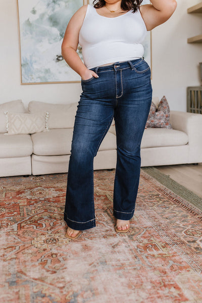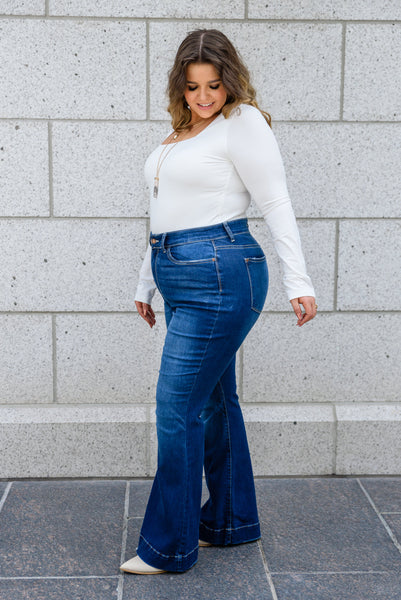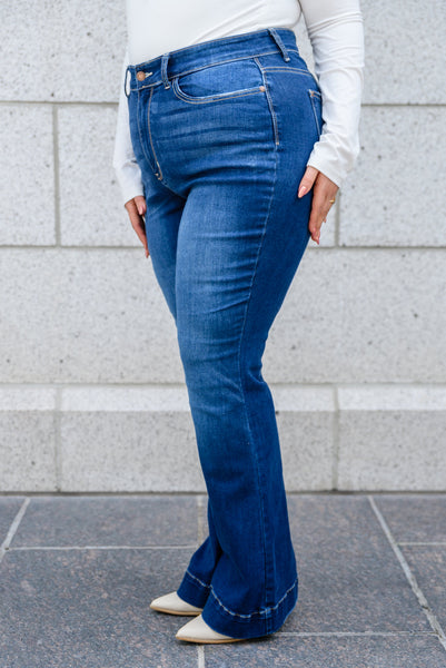 Stop what you're doing right now and order the Zoey Flare Jeans! Jeans this cute shouldn't be hanging out in your cart, they should be in your closet! Made from a stretchy dark wash denim that shapes a hi-rise, with a zipper fly, five pocket cut, and a slim fit silhouette that flares at the ankle with a cute 2" hem detail. Pair these adorable jeans with a floral blouse and heeled boots for a cute transitional look!